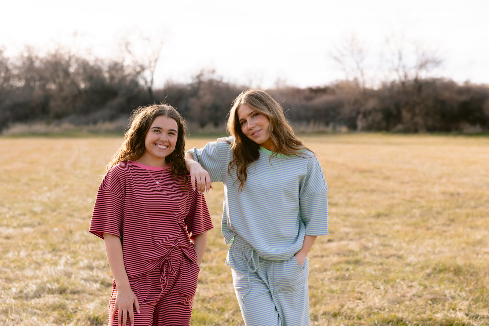 Effortless comfort meets laid-back style with the Sunset Stripe Set. This two-piece ensemble features a relaxed short-sleeve top with an oversized fit paired with matching...
