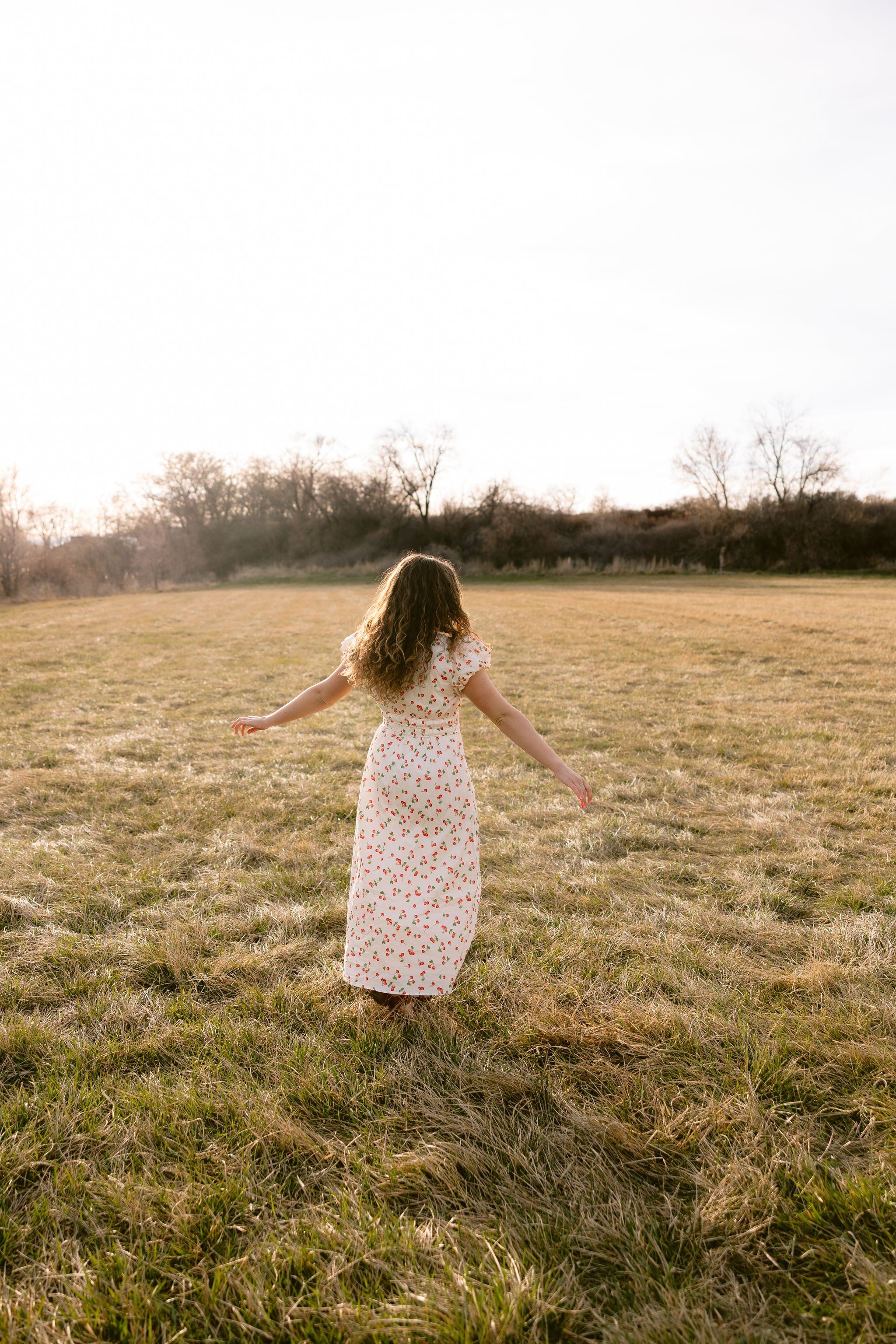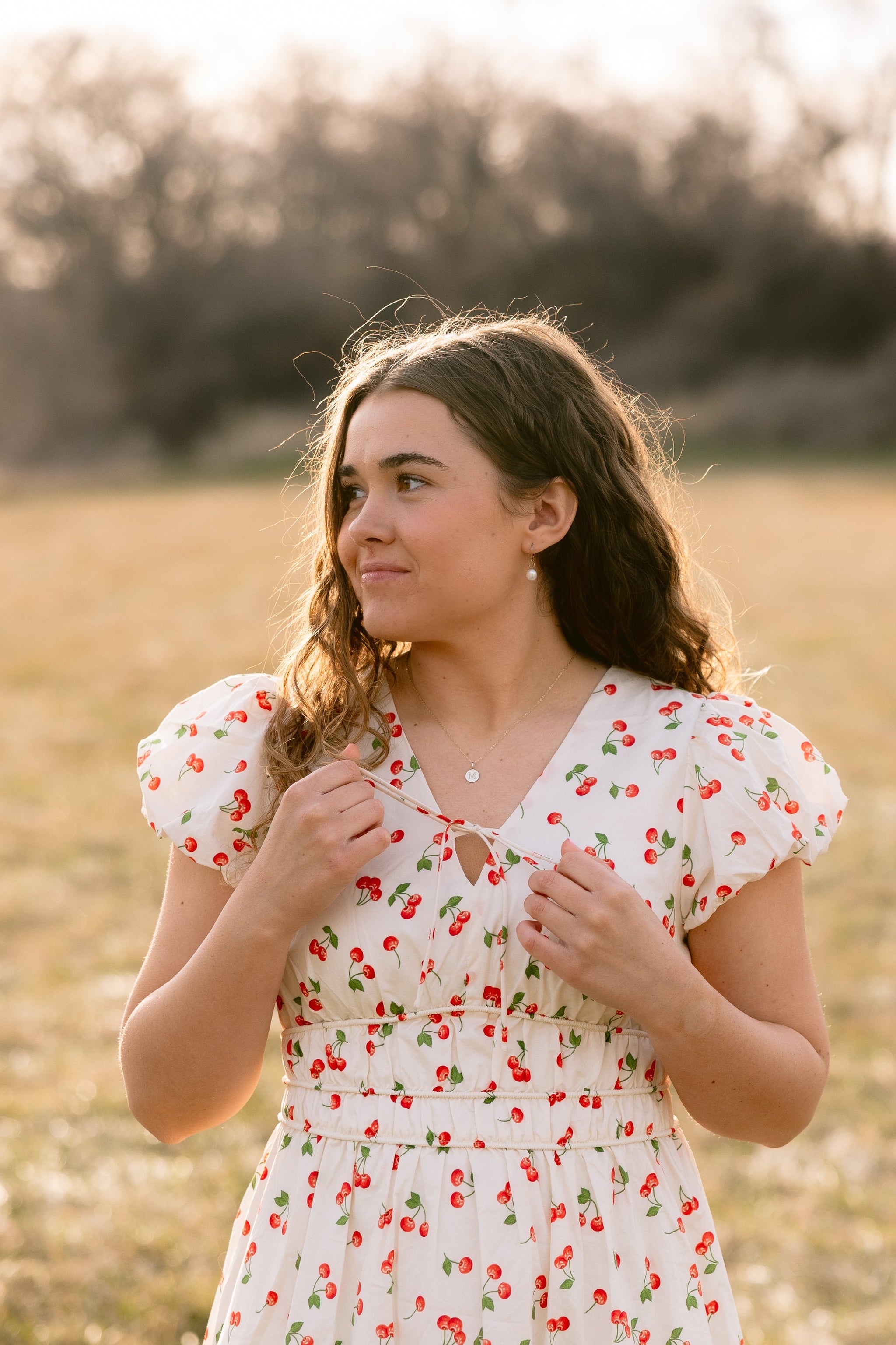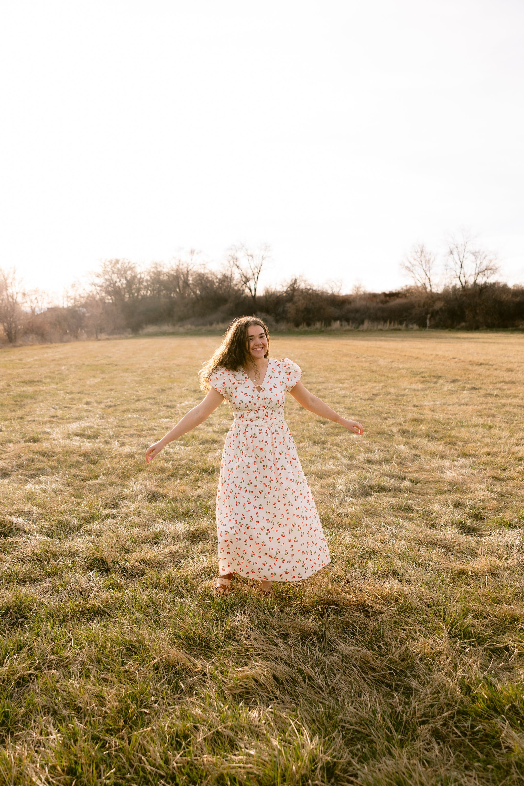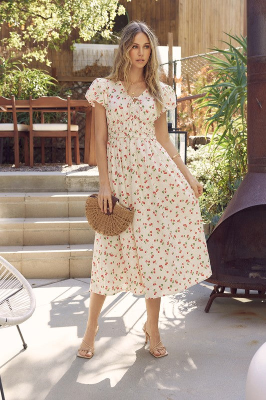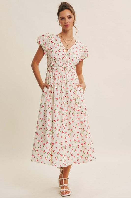 Cotton cherry print midi dress